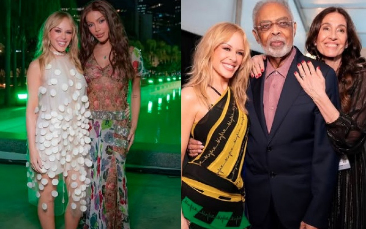 Rio - A cantora australiana Kylie Minogue compartilhou no Instagram, nesta quarta-feira (12), cliques ao lado de Anitta, Gilberto Gil e da mulher dele, Flora. Na legenda da publicação, a artista escreveu: "Brazilian icons (Ícones brasileiros)".