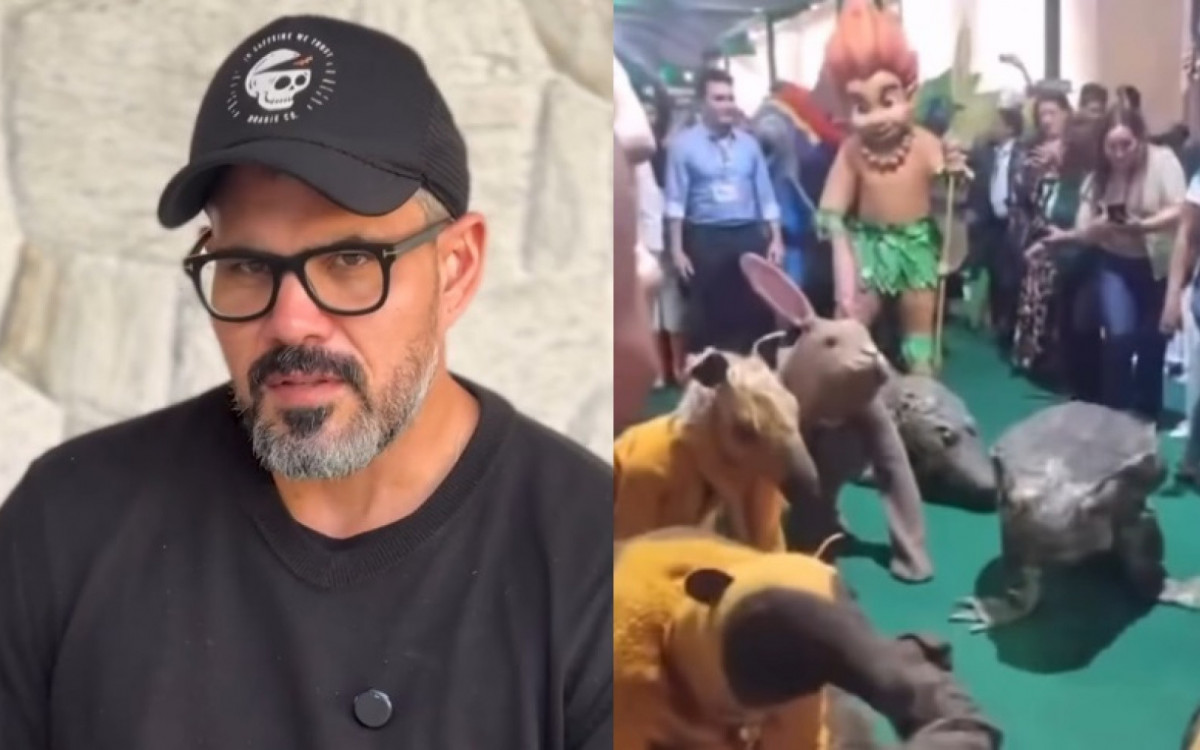 O ator Juliano Cazarré, de 45 anos, ironizou uma apresentação cultural de pessoas fantasiadas de animais, na COP30, em Belém, no Pará. A performance, que contou com alguns integrantes rastejando, aconteceu na Zona Verde, pavilhão que tem o objetivo de unir pessoas da sociedade civil, instituições e líderes globais no Parque da Cidade.
