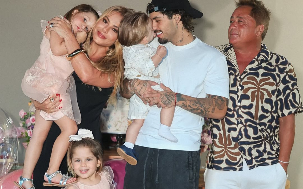 Filhos de Leonardo de outras relações, João Guilherme e Jessica Beatriz Costa também comemoraram ao lado da madrasta.