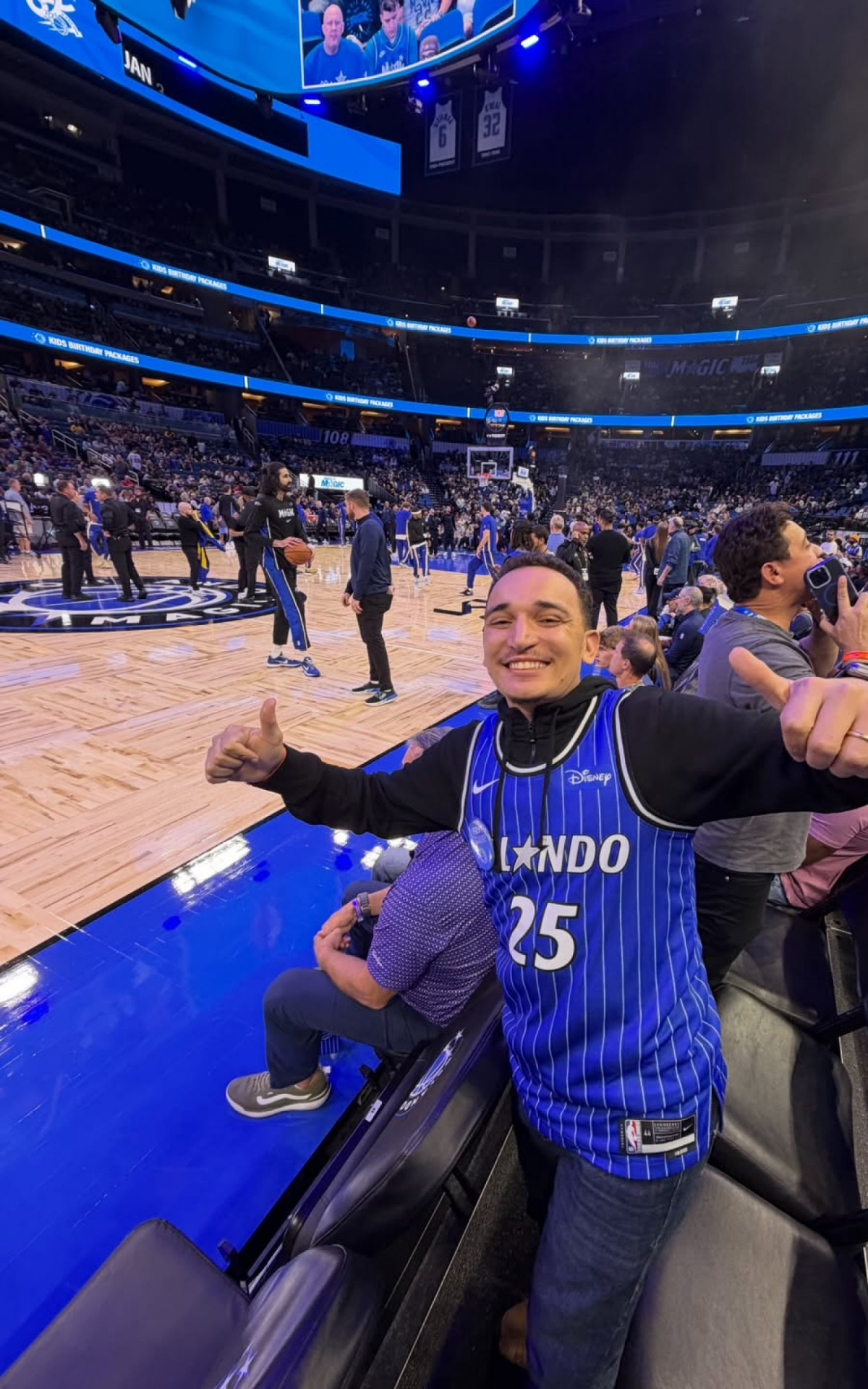 Rio - João Gomes aproveitou a passagem pelos Estados Unidos para acompanhar uma partida da NBA entre Orlando City e Golden State Warriors na noite desta terça-feira (18). O cantor publicou fotos do confronto e relembrou a época em que praticou basquete na escola.