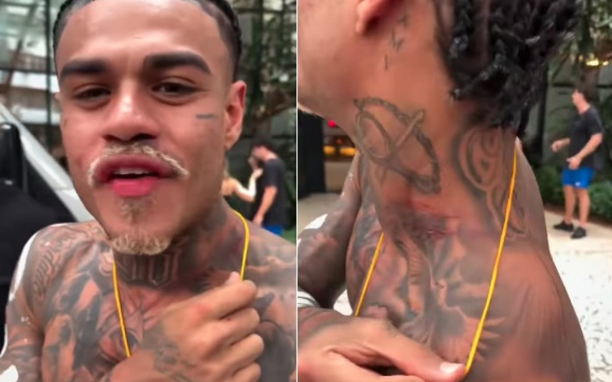 "Rapaziada, fui inventar de ir dar um rolê no Pelourinho, estava tendo Olodum. Bagulho lotadão. Na hora de ir embora, tentaram até levar meu cordão. Olha para o meu pescoço como é que está. Mano, bagulho ficou doido no Pelourinho", disse Cabelinho, mostrando as feridas no pescoço.