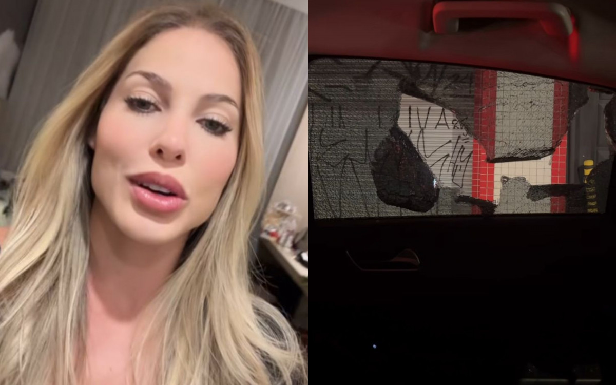 A influenciadora agradeceu as mensagens de apoio recebidas e mostrou o carro após o ocorrido. O veículo apresentou o vidro quebrado do lado em que ela estava sentada.