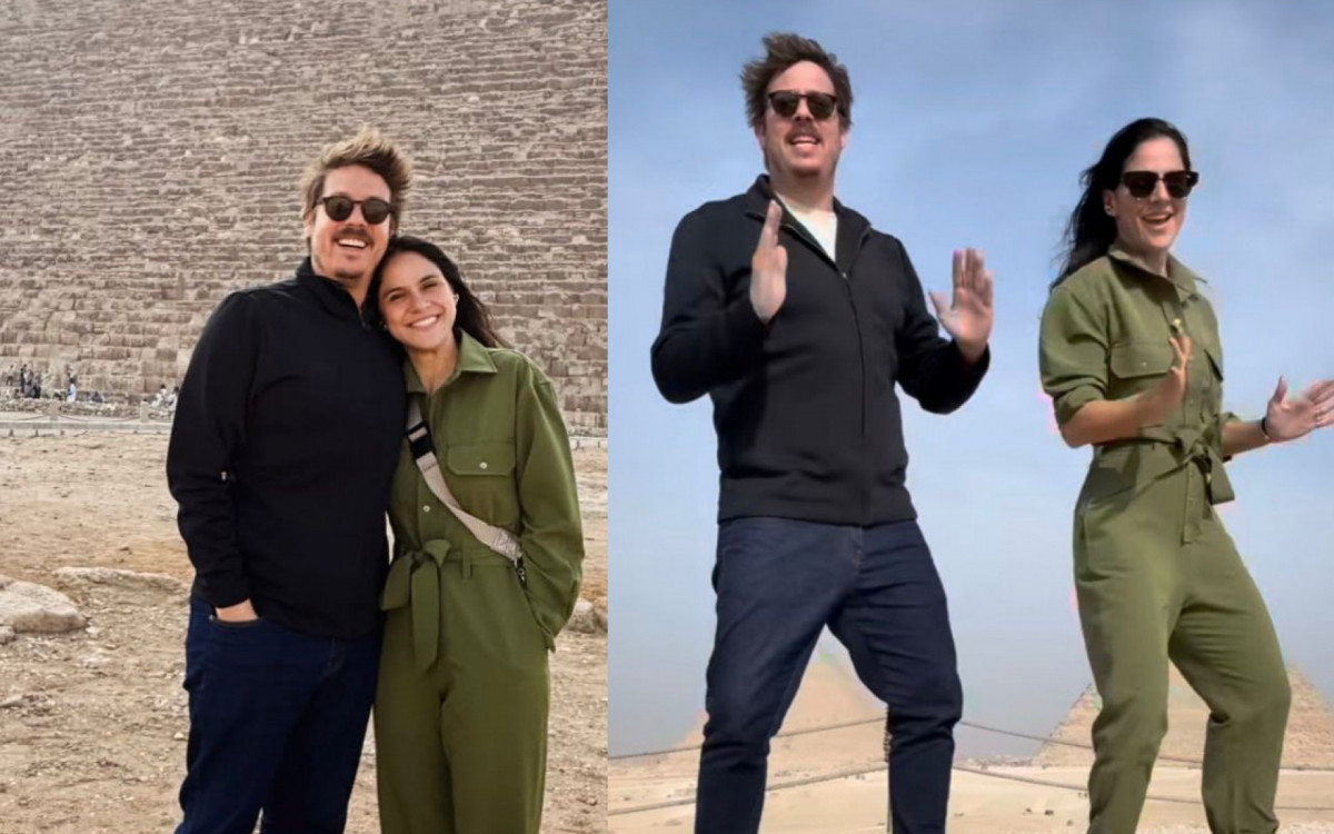 Fábio Porchat dança 'Faraó' com a namorada no Egito