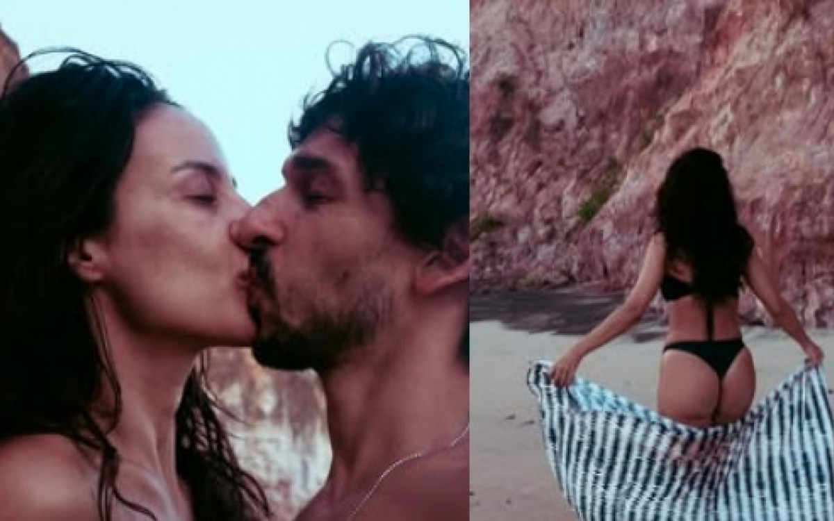 Andréia Horta ganha beijo do marido e exibe bumbum empinadinho em dia de praia