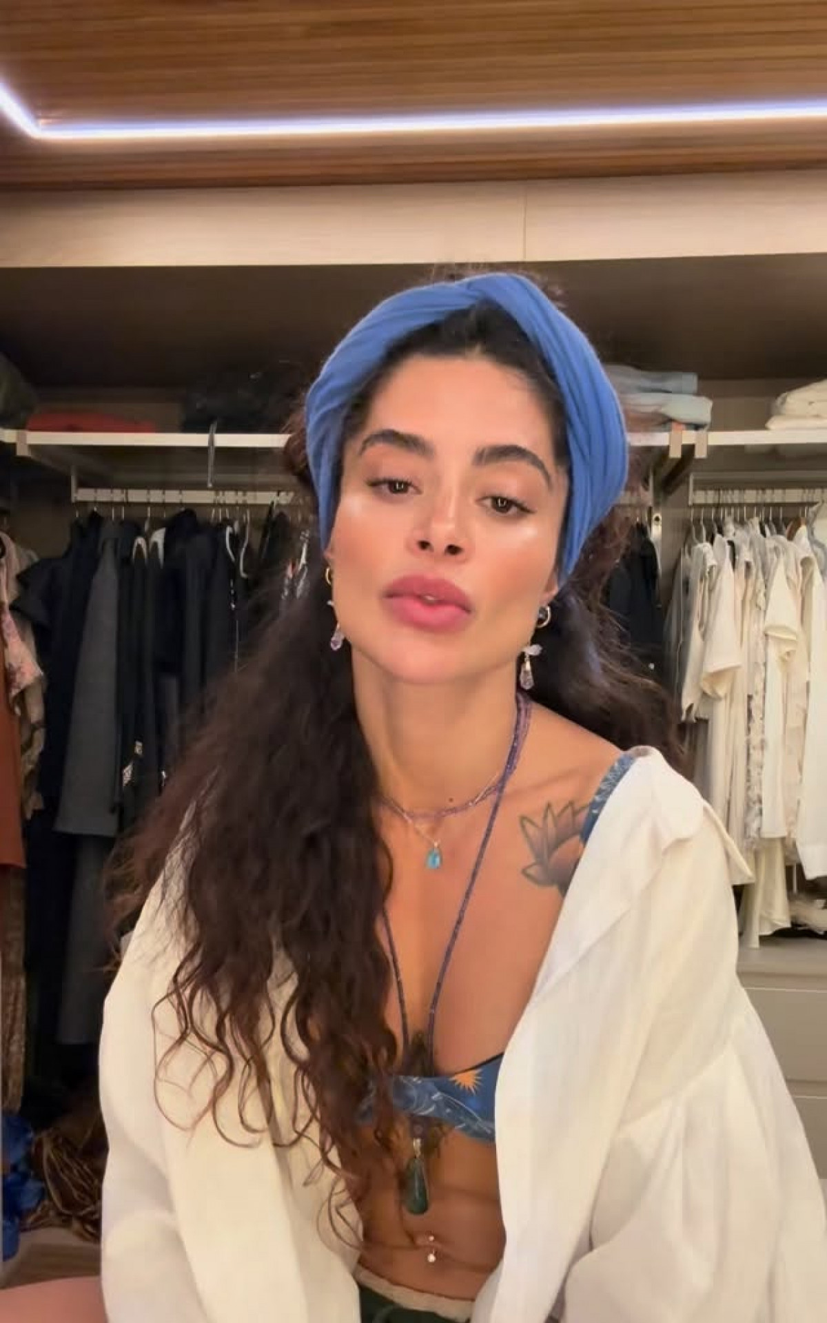 A participante contou que a mudança no visual acompanha uma fase de transformação pessoal, ligada ao autoconhecimento e à saúde mental. O uso frequente dos lenços, inclusive, virou um método criado por ela a partir dessas práticas.