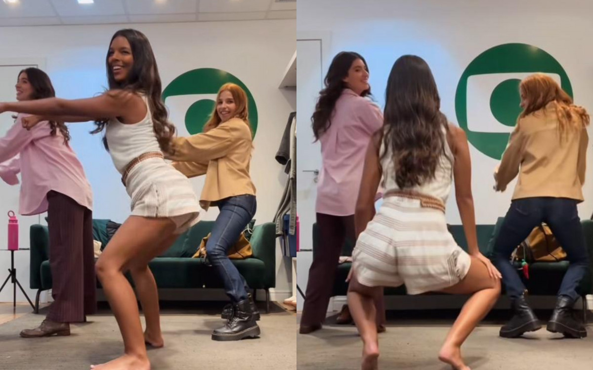 O registro foi compartilhado nos stories das atrizes nesta quarta-feira (28), durante uma pausa nas gravações. No vídeo, Mell conduz os passos da coreografia, enquanto Gabriela e Alanis acompanham a sequência.