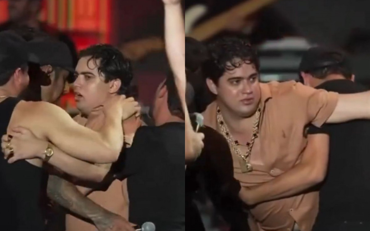 Nas imagens, Natanzinho aparece visivelmente fora de si e resiste a encerrar a participação no evento. Pelo menos três homens entram em cena para conduzi-lo para fora do palco.