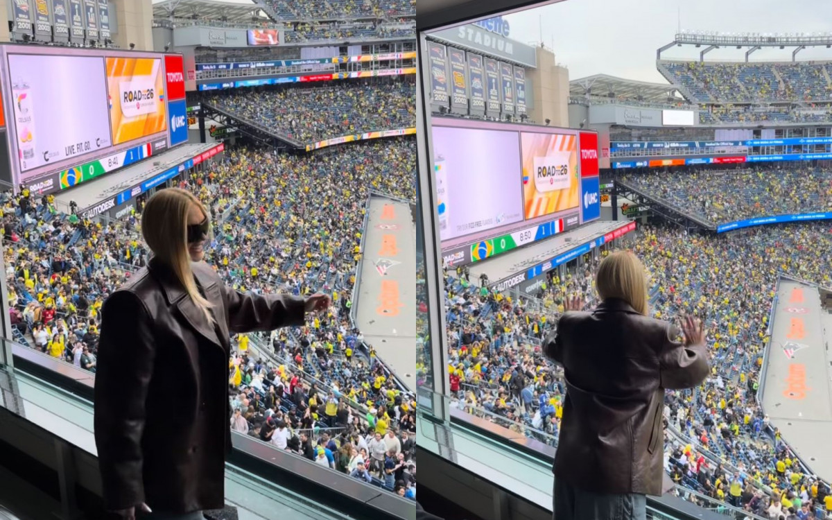 Namorada de Vinícius Júnior, a influenciadora recebeu o carinho de torcedores brasileiros presentes no local. Em registros publicados nas redes sociais, ela aparece acenando, mandando beijos e fazendo coração com as mãos enquanto ouve o público entoar seu nome.