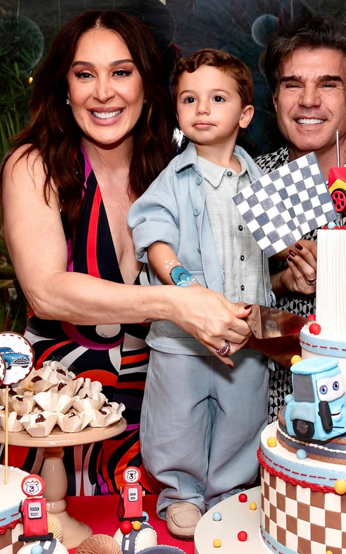 O evento teve como tema o filme “Carros”, com decoração inspirada no universo da animação da Disney. Nas imagens publicadas, Luca aparece sorridente ao lado dos pais.