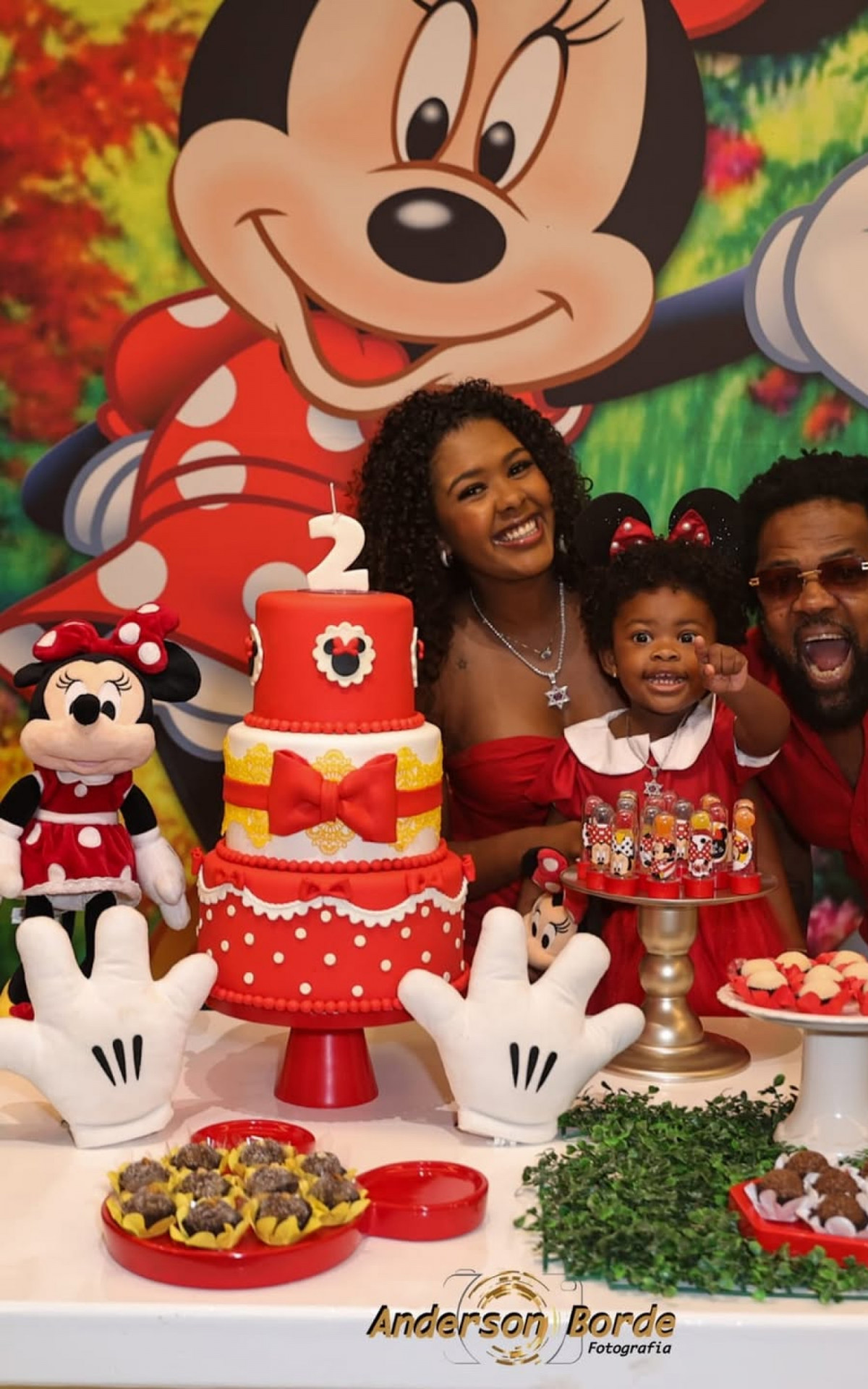 A aniversariante apareceu caracterizada como a personagem, em sintonia com a decoração, que reuniu mesa de doces personalizados e um bolo inspirado no universo da Disney. A celebração também marcou uma data especial para a família: a mãe da menina, a atriz e nutricionista Thay Pereira, conhecida nas redes como Mikimbeth, faz aniversário no mesmo dia.