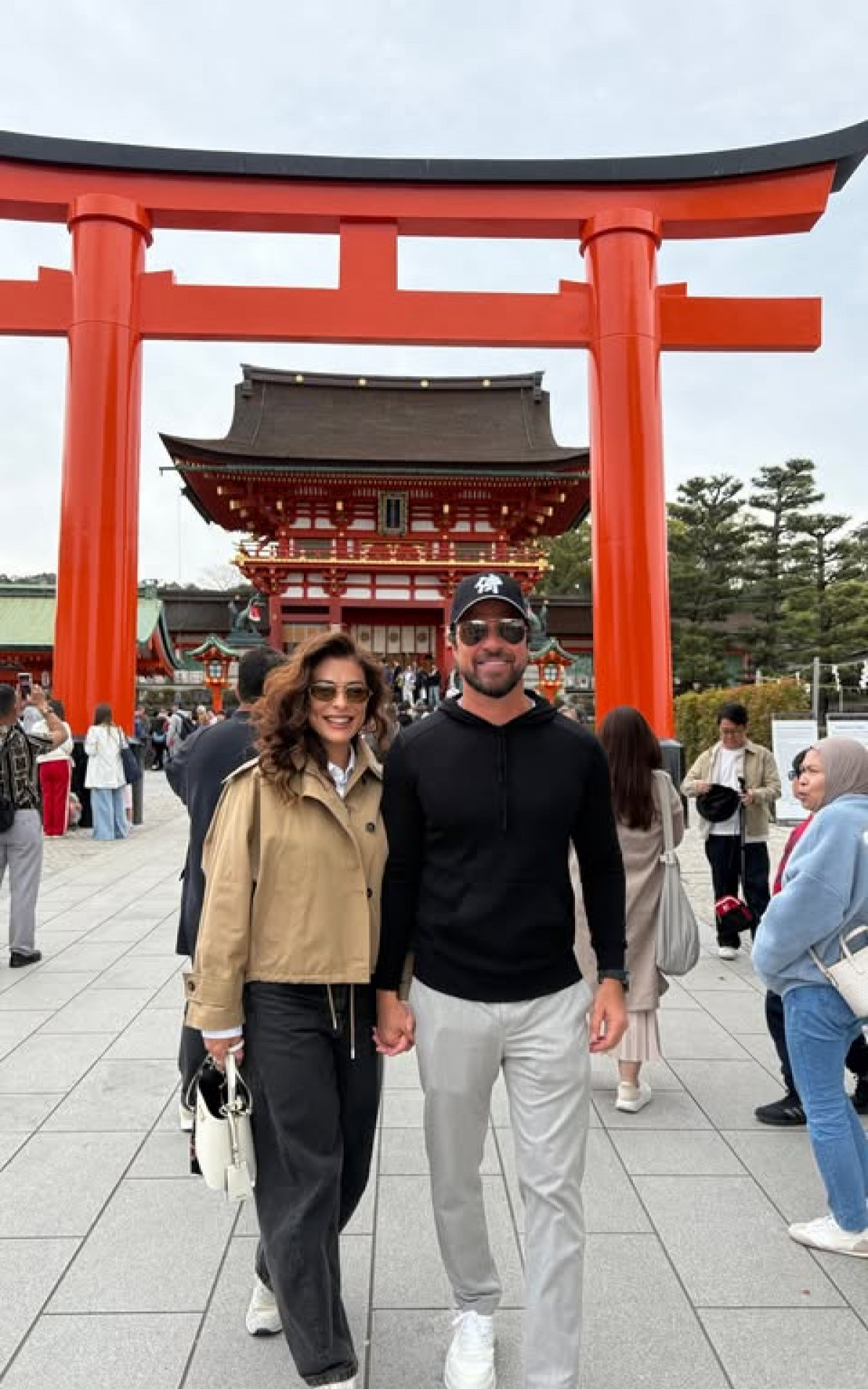 Atriz compartilha registros ao lado de Carlos Eduardo Baptista e passa por pontos turísticos como o Mercado Nishiki e o santuário Fushimi Inari Taisha