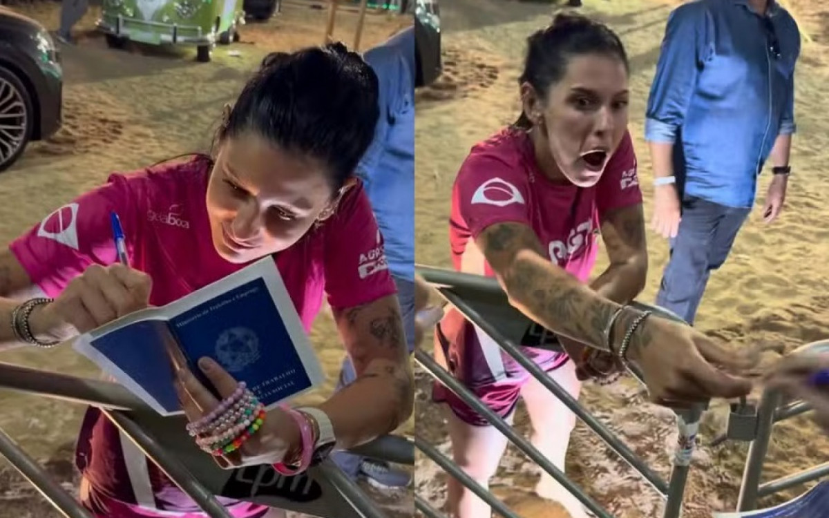 Ao mostrar o documento, o fã arrancou risadas de quem acompanhava a cena. “Pronto, agora faço parte da Agroplay”, brincou. Surpresa, a cantora reagiu na mesma hora: “Ah, não faz não”, disse, entrando na zoeira ao perceber o que tinha acabado de “assinar”.