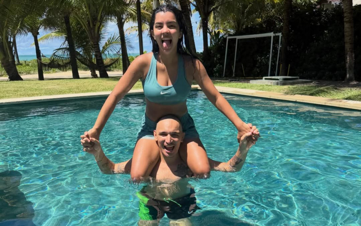 Rio - O cantor João Gomes e a mulher, Ary Mirelle, aproveitaram o dia de sol juntinhos, neste sábado (18). Na mansão recém-construída no Recife, em Pernambuco, o casal curtiu a piscina e compartilhou o momento nas redes sociais.