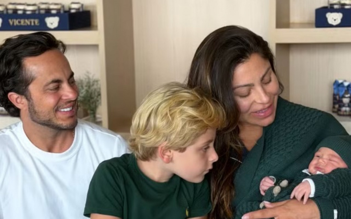 Gravado ainda na maternidade, o vídeo mostra o primogênito se aproximando com cuidado do bebê, que nasceu no dia 13 de abril, em São Paulo, medindo 53 centímetros e pesando 4,2 kg.