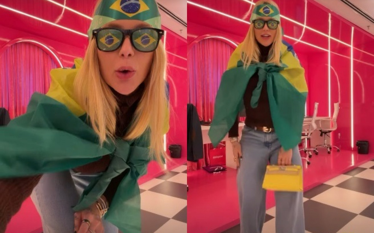 "Empolgada não, além...Vou levar para as crianças, a Copa está aí", disse ela nos Stories. "Eu amei!!! Dá para levar em viagem, irei levar para assistir aos jogos, óbvio", completou na legenda.