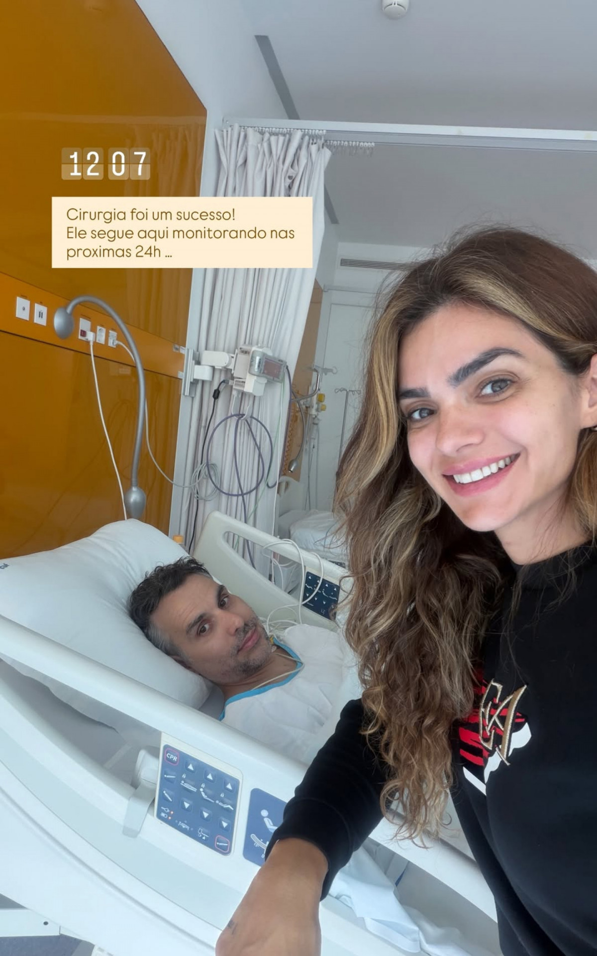 “Cirurgia foi um sucesso! Ele segue aqui monitorando nas próximas 24h…”, escreveu Kelly nas redes sociais, ao publicar uma foto ao lado do empresário ainda no hospital.