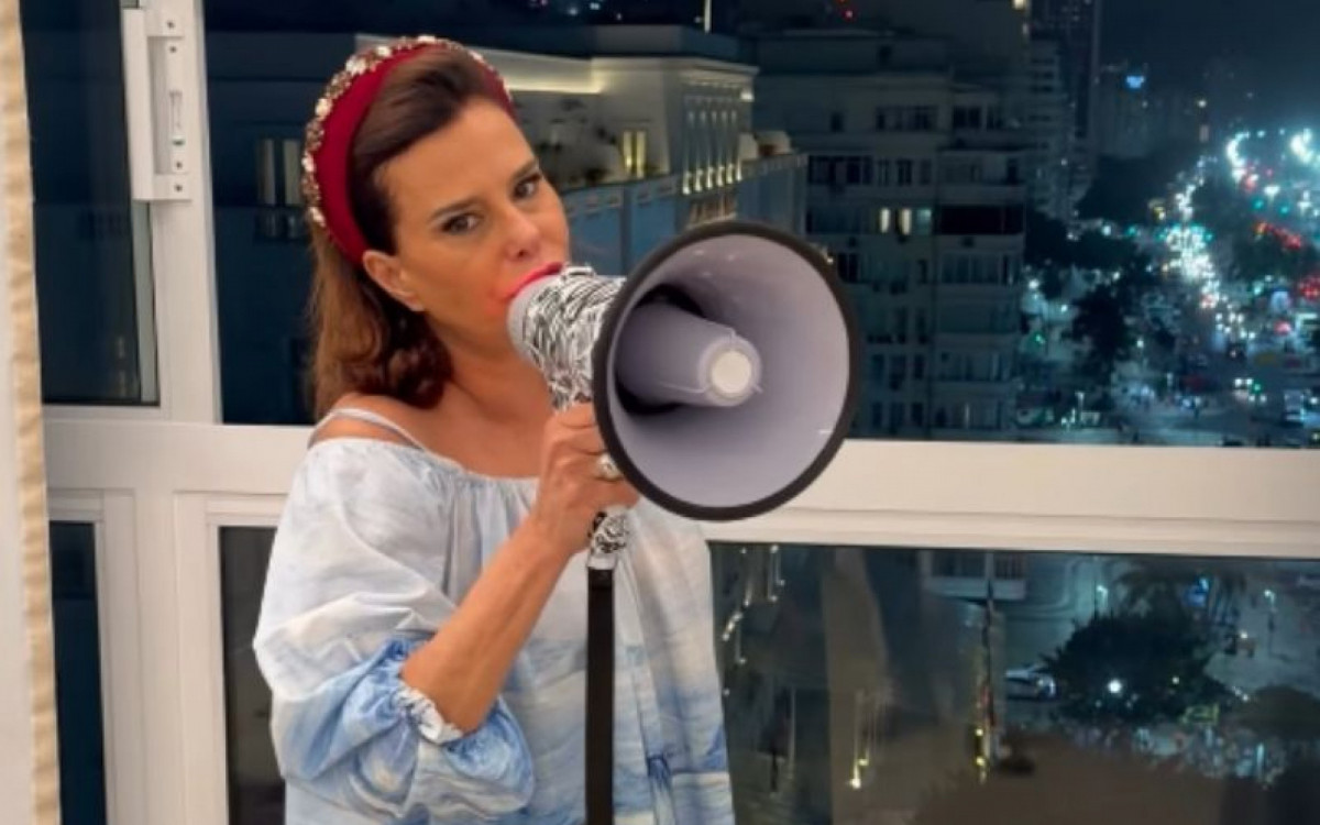De megafone, Narcisa Tamborindeguy dá boas-vindas à Shakira em Copacabana