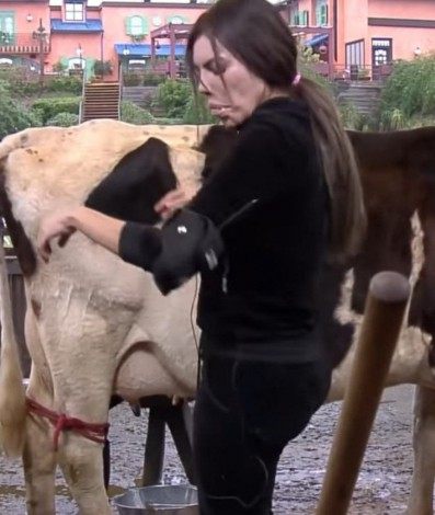 'A Fazenda 13': Liziane Gutierrez leva 'rabada' no rosto ao ordenhar vaca