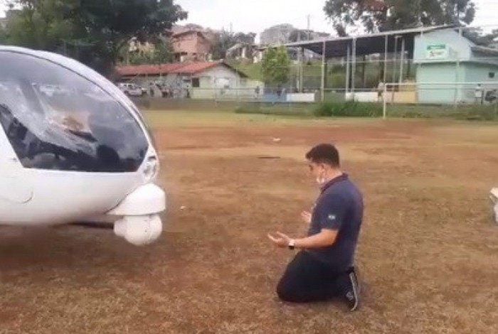 Oração | De joelhos, Dudu Barbatti, piloto do helicóptero da Globo, agradece a Deus após pouso de emergência em Belo Horizonte pic.twitter.com/o1Ag22MTc9