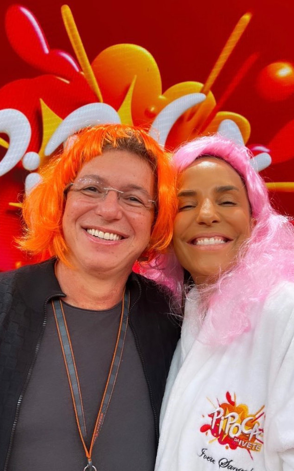 "Primeiro dia de gravação da 'Pipoca da Ivete'. Vamos brincar muito todo domingo, a partir de 24 de julho na TV Globo", escreveu o diretor de variedades da emissora carioca. No clique publicado no Instagram, Boninho e Ivete aparecem usando perucas coloridas, enquanto posam sorridentes para uma selfie.