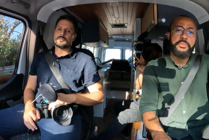 Equipe do Profissão Repórter a bordo do motorhomeReprodução/Globo