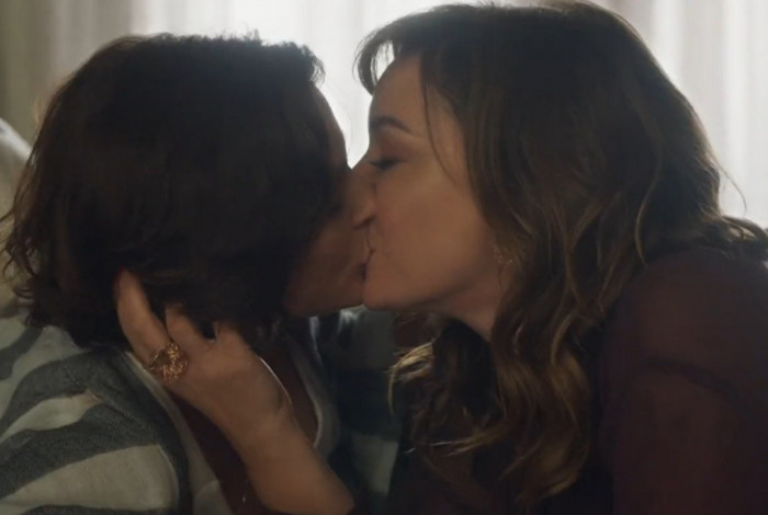 Clara (Regiane Alves) e Helena (Priscila Sztejnman) se beijam em Vai na FéReprodução de vídeo / TV Globo