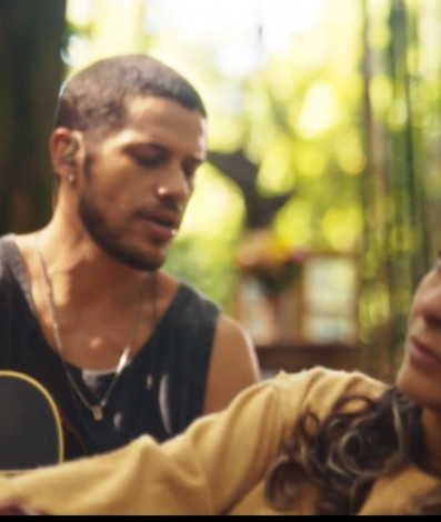 A cena começa com Orfeu (Jonathan Haagensen) cantando os primeiros versos da música em um Karaokê, seguido por Sol (Sheron Menezzes) e Ben (Samuel de Assis), que entoam o sucesso enquanto cozinham. Lui Lorenzo (José Loreto), Dora (Claudia Ohana), Jenifer (Bella Campos), Wilma (Renata Sorrah), Vitinho (Luis Lobianco), Guiga (Mel Maia), Lumiar (Carolina Dieckmann) e vários outros personagens soltam a voz em ambientes e situações diferentes da trama.
