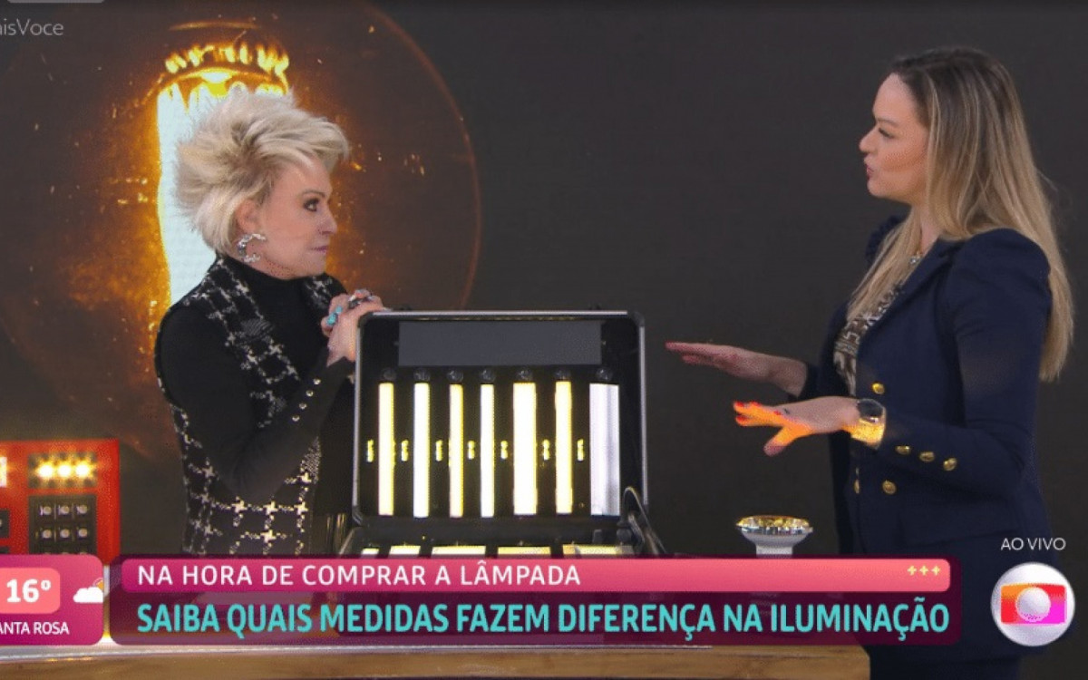 "Rapaz, mas eu não posso contratar você pra fazer isso", disse Ana Maria em certo momento. "Pode sim", disse a convidada. "Graças a Deus, eu posso. Mas a maioria do povo brasileiro não pode ter uma profissional em casa. Então, o que eu estou tentando conversar com você é pra cair no popular. Você deve conversar também com gente que não consegue te contratar. O que eu tenho que escolher pra minha casa ter uma boa iluminação? Não precisa ser profissional. O que eu tenho que olhar na lâmpada? Qual é a recomendação?", perguntou a apresentadora.
