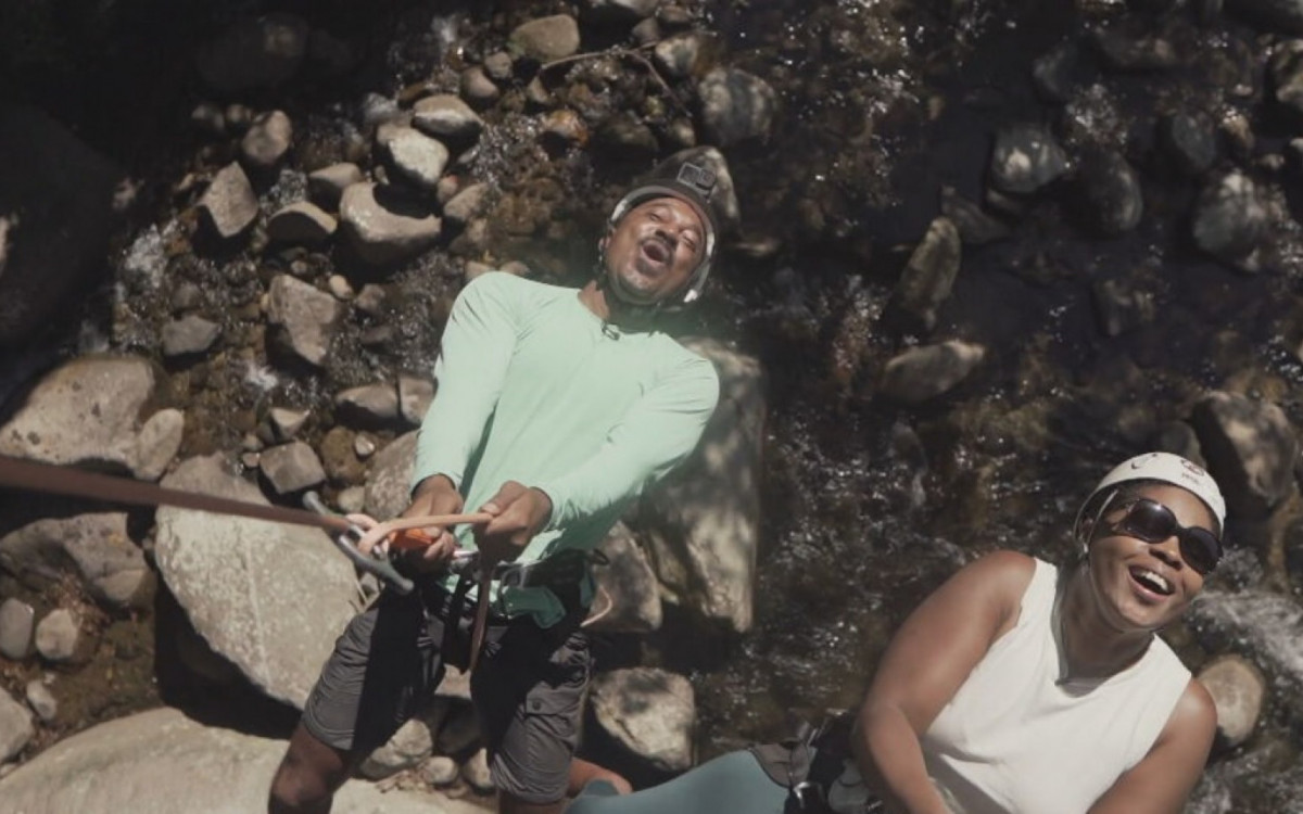 Mas o maior desafio do quinto programa para Daniella e Alexandre é encarar um rapel negativo sobre o Rio Macacu. A dupla de apresentadores vai descer de uma altura de cerca de 12 metros, mas, desta vez, na companhia de quatro pessoas com deficiência. "A parte boa é que a gente não está sozinho hoje", brincou Dani, ao lado de Alexandre. "Tem uma galera aventureira que vocês vão conhecer", anunciou ele.