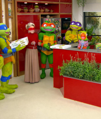 Ana Maria Braga as 11h da manhã conversando com as Tartarugas Ninjas e loro de mestre Splinter e toda essa frase faz sentido