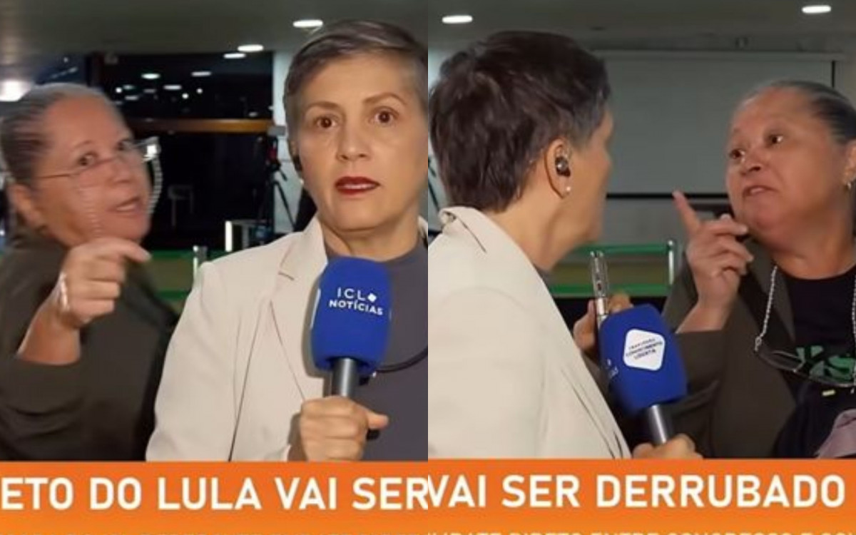 A interrupção seguiu com troca de acusações. “Fala que é só para o pessoal do 8 de janeiro”, insistiu a mulher. A repórter reagiu: “Ninguém te convidou para participar aqui. A gente está trabalhando. Não é sobre o 8 de janeiro, você está desinformada. Vai ler a lei”.