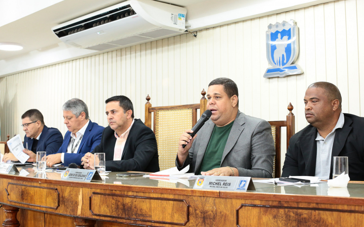 O superintendente da Câmara, Nivan Almeida, convidou à mesa o vereador Leandro Guimarães (MDB) que presidiu a audiência, o secretário municipal de Fazenda, Carlos Mello e os vereadores Leone (MDB), Michel Reis (SD) e Serginho do Pilar (PP). A vereadora Juliana do Táxi (PL) e o seu irmão o ex-vereador Alex também acompanharam a audiência em plenário.