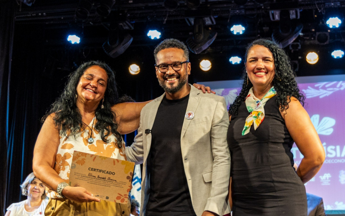 Mulheres de Duque de Caxias participaram da ação formativa que teve seu encerramento no teatro da Universidade Federal Fluminense (UFF), em Niteroi. Elas aprenderam sobre identidade, bioeconomia, empreendedorismo, comunicação, finanças e autocuidado, sempre a partir de uma perspectiva interseccional e inclusiva.