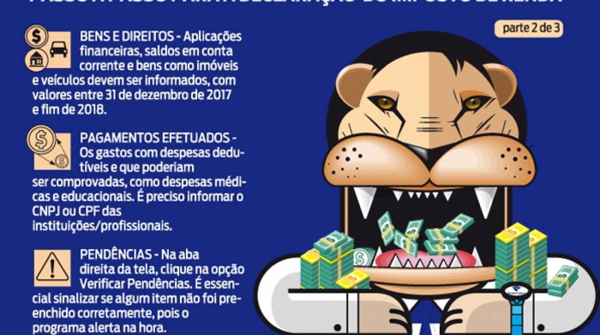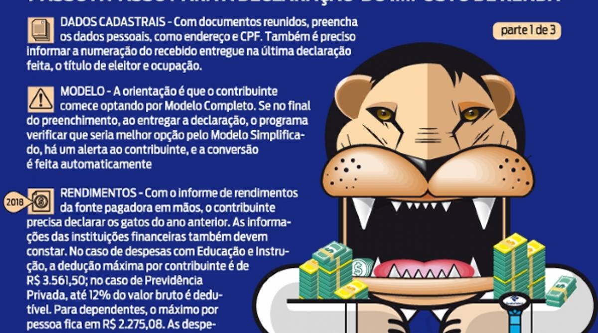 Rio - Passada a ressaca do Carnaval, começa hoje o período de acerto de contas com a Receita Federal. Para evitar que os contribuintes caiam nas garras do Leão ao fazer a Declaração de Imposto de Renda 2019 (ano base 2018), O DIA preparou um passo a passo sobre o envio dos dados. A Receita estima que 3,3 milhões de contribuintes fluminenses terão que entregar o documento. O programa para download já está disponível no http://www.receita.fazenda.gov.br/. É obrigado a declarar quem teve rendimentos acima de R$ 28.559,70. Cerca de 30,5 milhões de brasileiros vão preencher os dados este ano até 30 de abril.