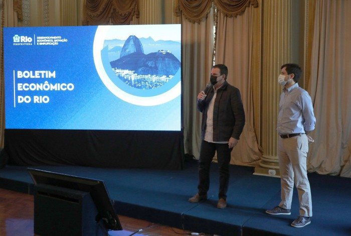Prefeito Eduardo Paes e secretário Chicão Bulhões divulgaram Boletim Econômico do Rio nesta segunda-feiraDivulgação/Prefeitura do Rio