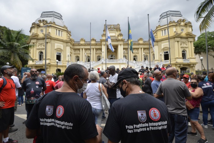 Rio - Bombeiros e policiais aposentados e pensionistas 'acamparam' nesta quarta-feira em frente ao Palácio Guanabara, sede do governo do Rio de Janeiro, onde realizam um protesto motivado pelo veto do governador Cláudio Castro à emenda do governo federal que determinou como obrigação de todos os estados a aprovação de um sistema de proteção social a militares, que teria o benefício estendido para inativos e pensionistas.