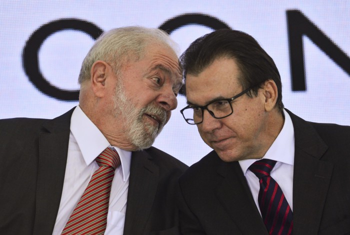 O presidente, Lula e o ministro do Trabalho, Luiz Marinho, durante encontro com dirigentes de centrais sindicais, no Palácio do Planalto. - Marcelo Camargo/Agência Brasil