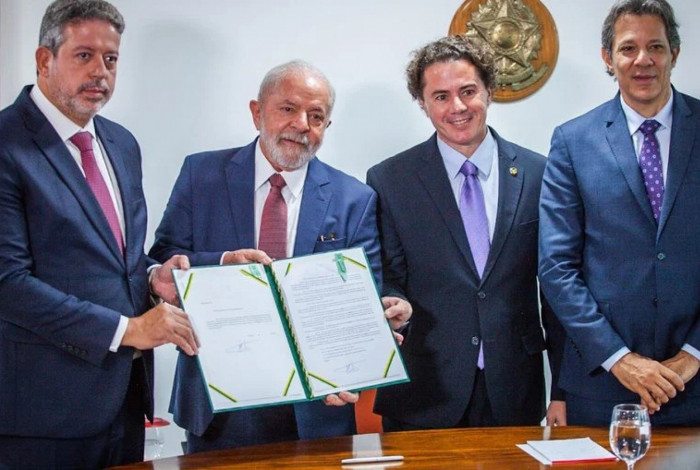 Luka entregou o projeto de arcabouço fiscal ao presidente da Câmara, Arthur Lira (PP-AL)Diogo Zacarias/Ministério da Fazenda