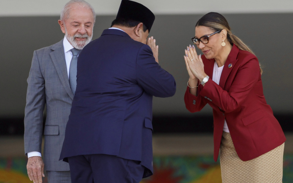 Reação de Janja à pergunta ocorreu quando Lula estava se despedindo do presidente da Indonésia, Prabowo SubiantoFabio Rodrigues-Pozzebom/Agência Brasil