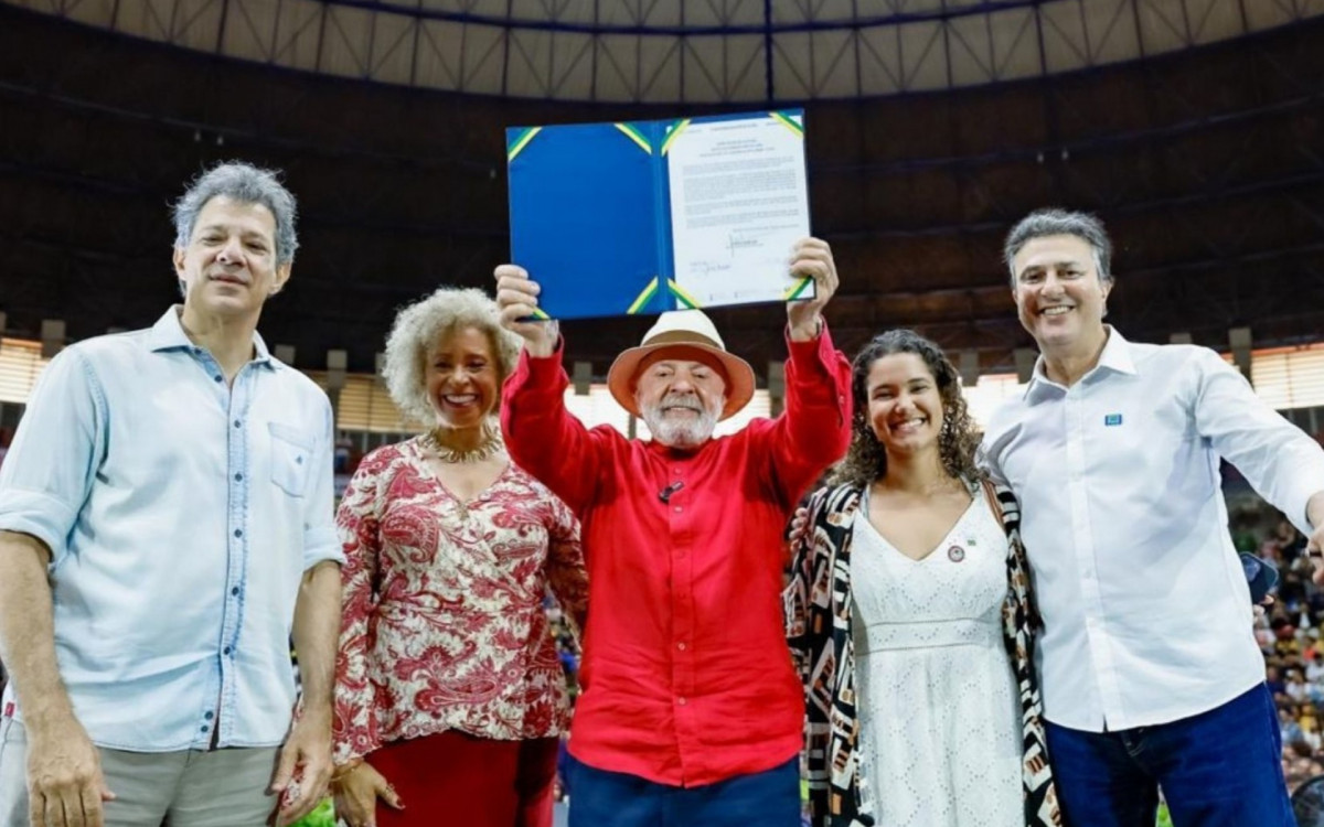 O chefe do Executivo está acompanhado dos ministros da Educação, Camilo Santana, da Fazenda, Fernando Haddad, do Trabalho, Luiz Marinho, e do Desenvolvimento Agrário, Paulo Teixeira.