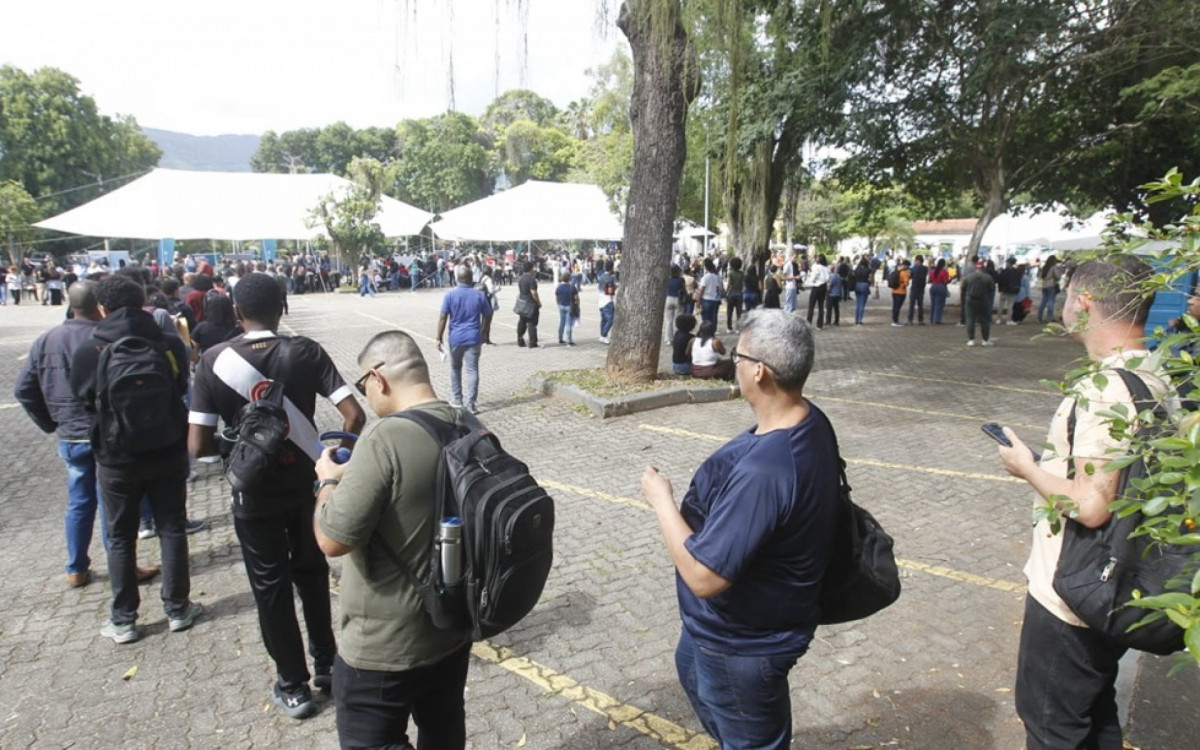 Reginaldo Sales, morador do Bairro das Graças, em Belford Roxo, na Baixada Fluminense, esteve presente no evento. Ele explicou que havia um cadastramento via QR Code para otimizar a avaliação por parte de algumas empresas.