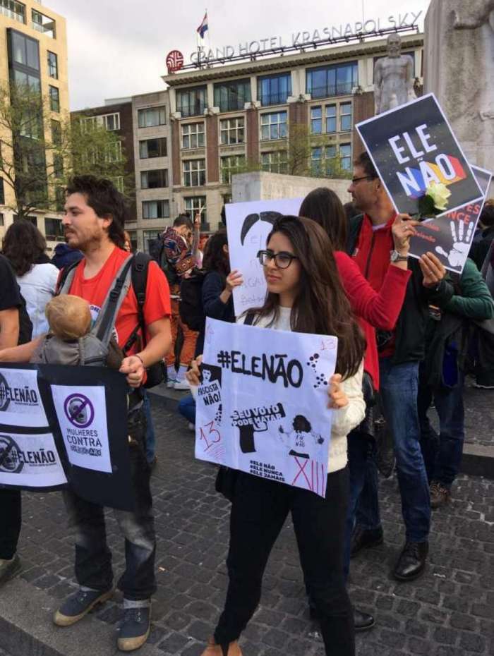Em Amsterdam, capital da Alemanha, também houve ato contra Bolsonaro.