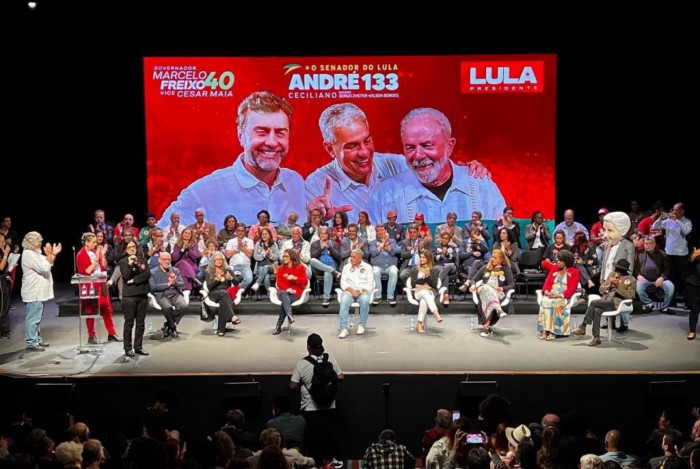 Na noite desta quarta-feira (28), artistas, intelectuais, políticos e representantes de universidades se reuniram no Teatro Casa Grande, no Leblon, para um ato de apoio à candidatura de André Ceciliano (PT) ao Senado.