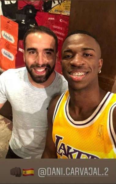 Madri - Vinicius Junior parece já estar entrosado com seus novos companheiros de Real Madrid. O jovem atacante compartilhou neste domingo uma foto ao lado de Dani Carvajal, lateral direito do clube madrilenho e da seleção da Espanha.