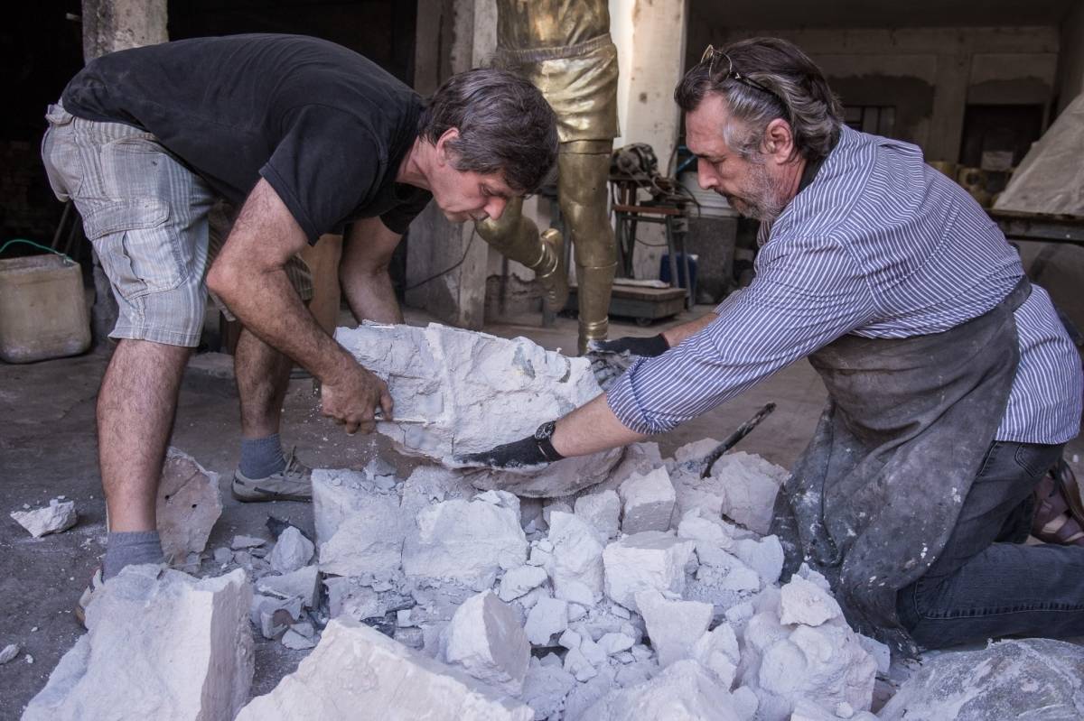A produção da estátua é conduzida pelos artistas Theo Felizzola, Iouri Petrov e Jamil Fraga.