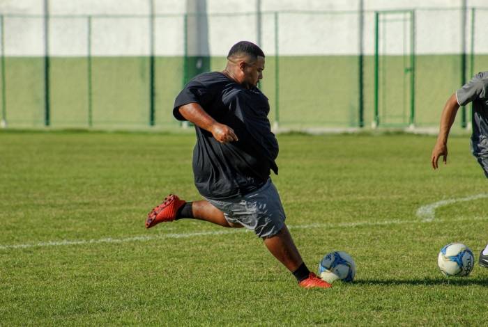 A cena pode chamar a atenção de muitos torcedores, mas se engana quem pensa que a obesidade é empecilho para Felippe Fernandes. Ao seguir o sonho de criança, o preparador de goleiros do Rio São Paulo, clube da Terceira Divisão do Campeonato Carioca, luta contra o preconceito para tentar mostrar que pode vencer na carreira mesmo sem seguir os padrões vigentes do futebol.