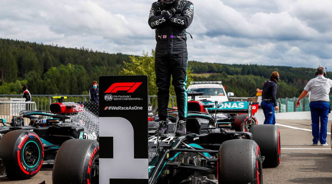 Foi a quinta pole de Hamilton em sete possíveis nesta temporada, a sexta na Bélgica e a 93ª da carreira, ampliando o próprio recorde. Engajado política e socialmente, o inglês comemorou com uma homenagem a Chadwick Boseman, protagonista do filme Pantera Negra, que morreu nesta sexta-feira, vítima de câncer de cólon, aos 42 anos.