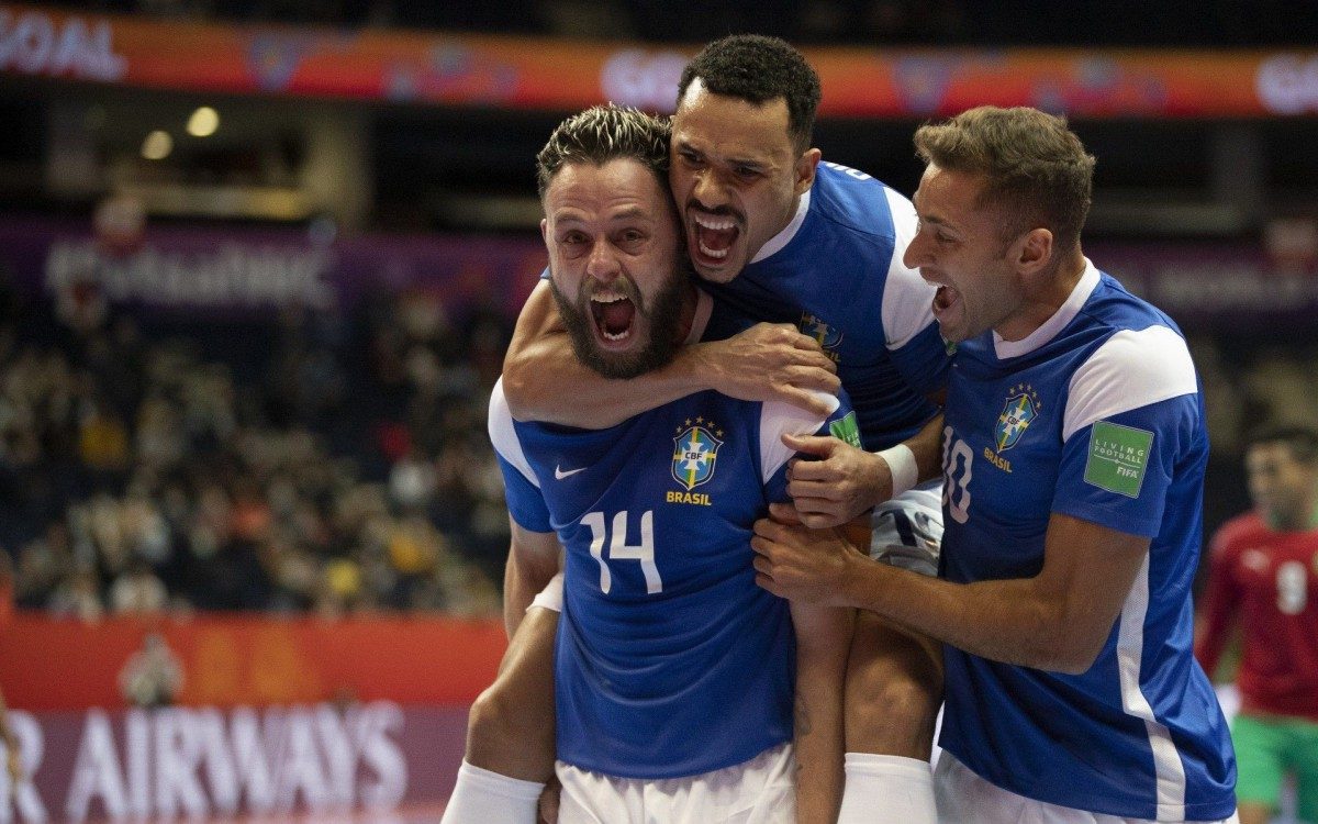 Vilnius, Lituânia - Pentacampeã, a seleção brasileira passou enorme sufoco para avançar às semifinais do Mundial de Futsal, em Vilnius, na Lituânia. Com excelentes defesas do goleiro Guitta e gol solitário de Rodrigo, fez 1 a 0 no Marrocos, na Avia Solutions Group Arena, para garantir a classificação entre os quatro melhores.