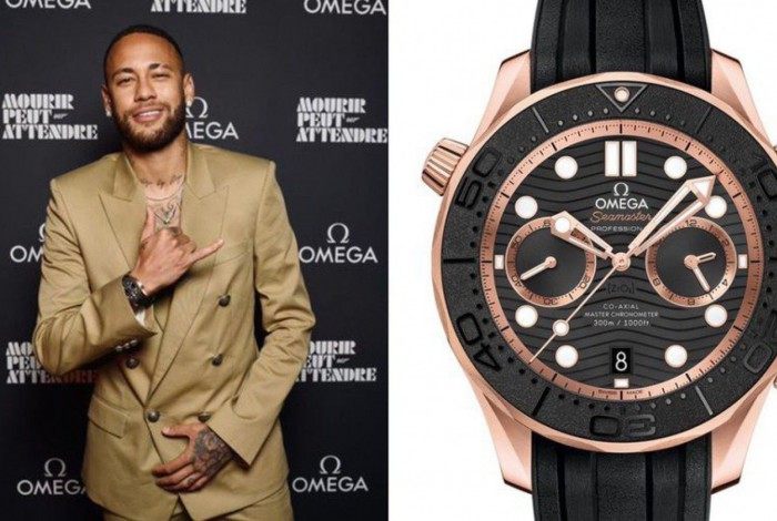 O acessório usado pelo brasileiro se trata de um relógio da Omega, e é uma releitura do clássico Seamaster, apresentado em 1993. O modelo, confeccionado em ouro de 18K, possui pulseira de borracha, mostrador em alto relevo, vidro de safira e ainda conta com botões de cerâmica esculpidos a laser.