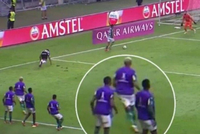 Além disso, o clube mineiro adicionou uma captura de tela que flagra o momento em que o atacante Deyverson, do Palmeiras, invade o campo no momento em que a jogada estava sendo finalizada no gol de empate de Dudu.